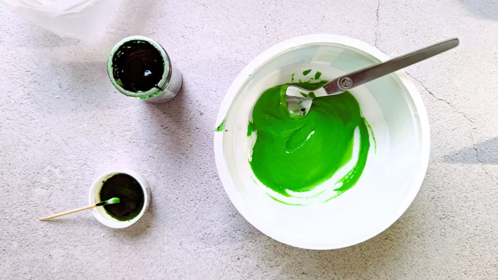 • Diviser le mélange dans des petits ramequins et colorer avec du colorant alimentaire selon les goûts. Mettre chaque préparation dans des petites poches à douille.