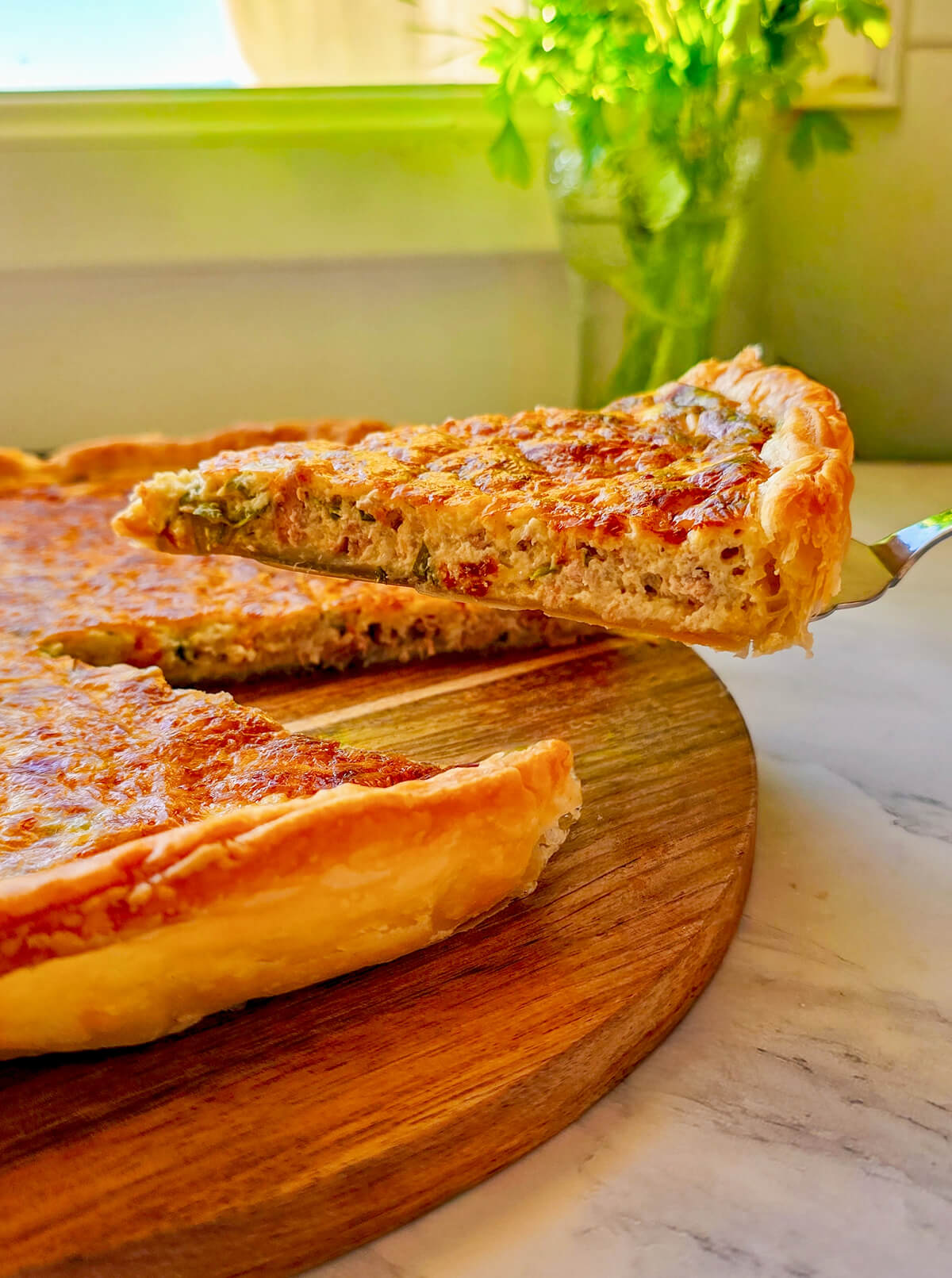 Cette quiche se conserve très bien au réfrigérateur pendant 2 à 3 jours dans une boîte hermétique. Pour lui redonner son croustillant, évitez le micro-ondes qui ramollit la pâte : préférez 5 à 10 minutes au four à 160°C. Elle se déguste aussi très bien froide pour un pique-nique !