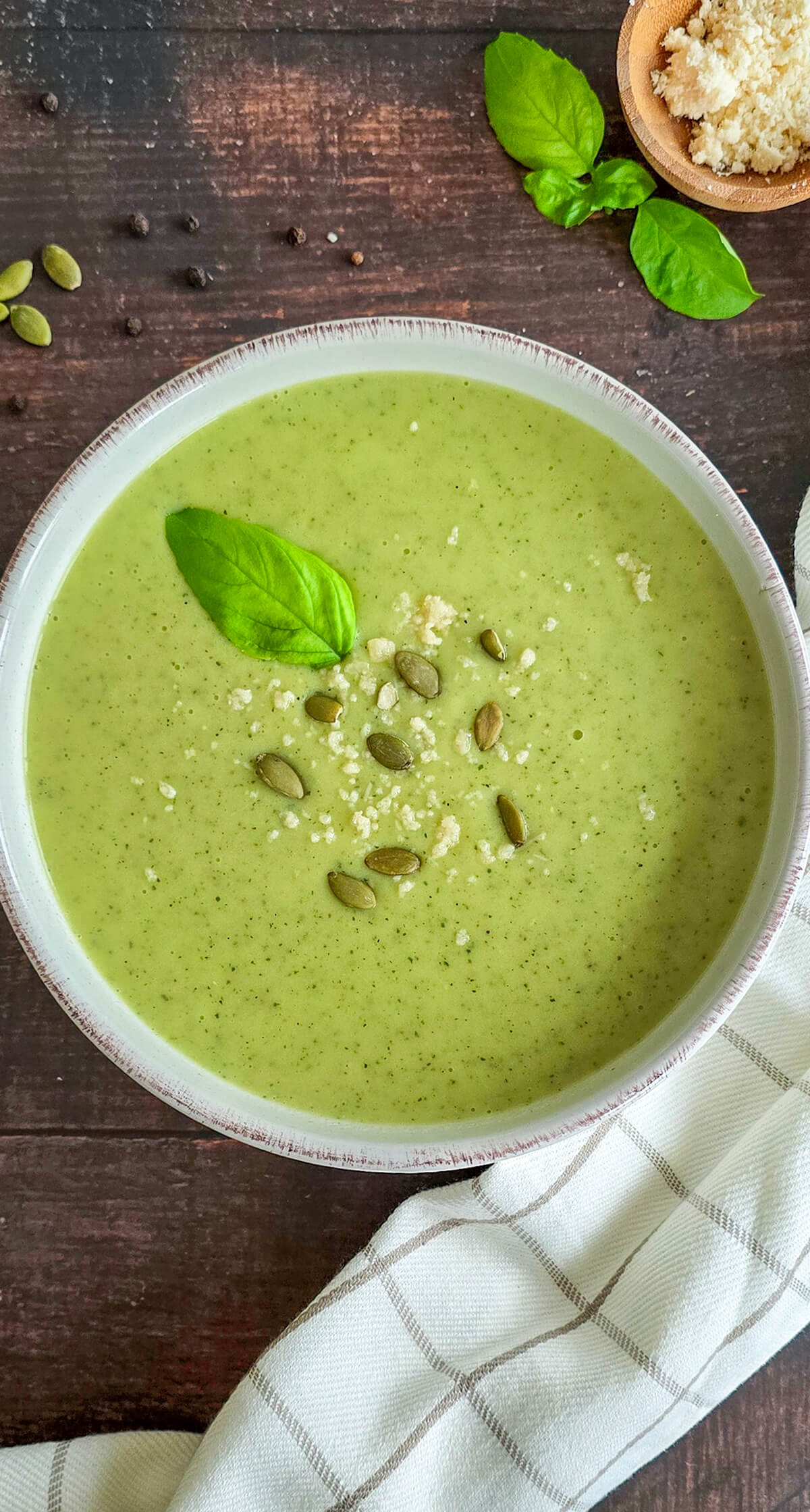 - Juste avant de servir, saupoudrer de parmesan râpé et de graines de courge.